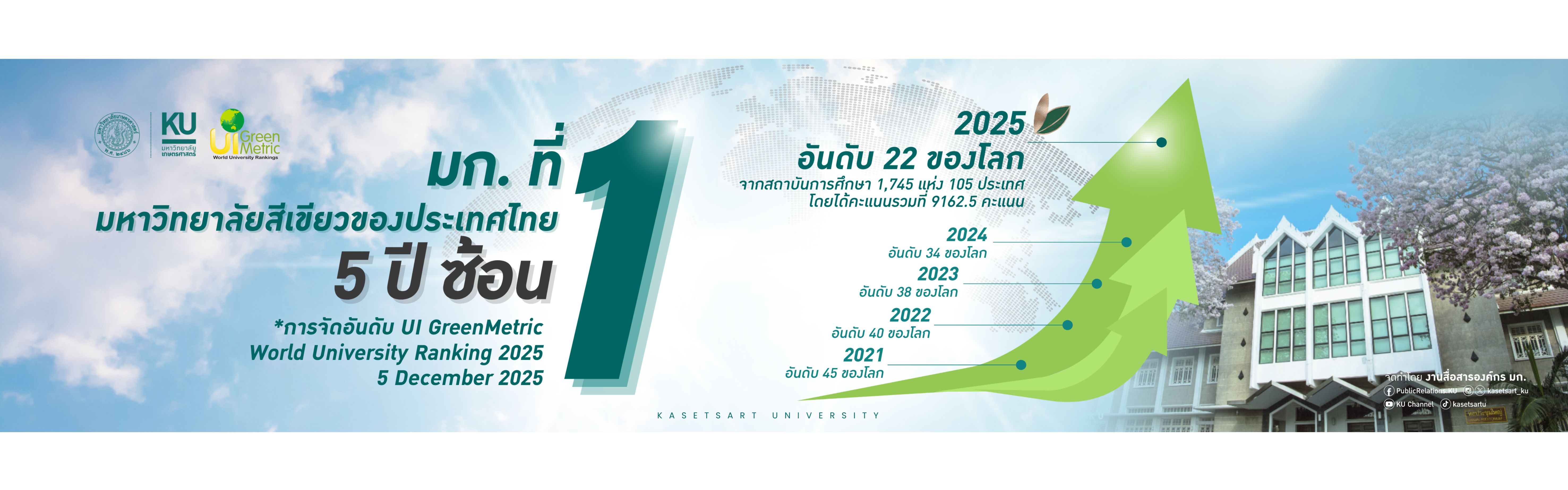 มหาวิทยาลัยเกษตรศาสตร์ ครองแชมป์อันดับ 1 มหาวิทยาลัยสีเขียวของประเทศไทย 5 ปี ซ้อนและอันดับที่ 22 ของโลก จากสถาบันการศึกษา 1,745 แห่ง 105 ประเทศ โดยได้คะแนนรวมที่ 9162.5 คะแนน จากผลสำรวจ UI Green Metric World University Ranking 2025 เมื่อวันที่ 5 ธันวาคม 2568