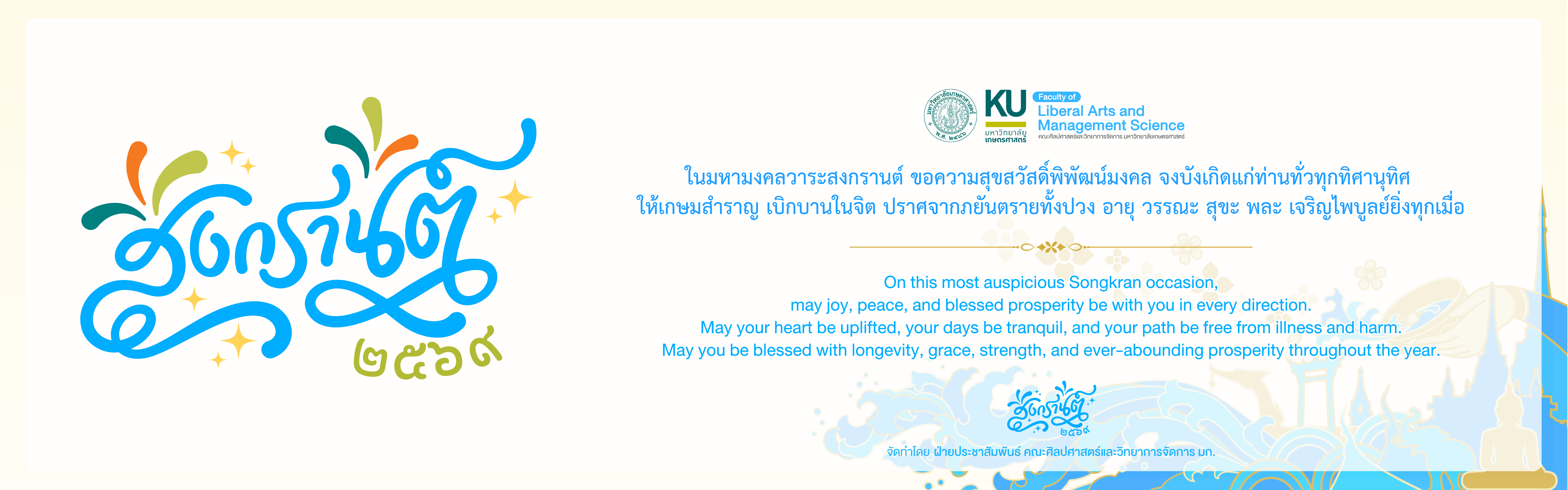 วันสงกรานต์ 2569 0 โดย Faculty of Liberal Arts and Management Science on 08/04/2026 ข่าวประกาศ แชร์ : Twitter Facebook Pinterest LinkedIn Tumblr Email