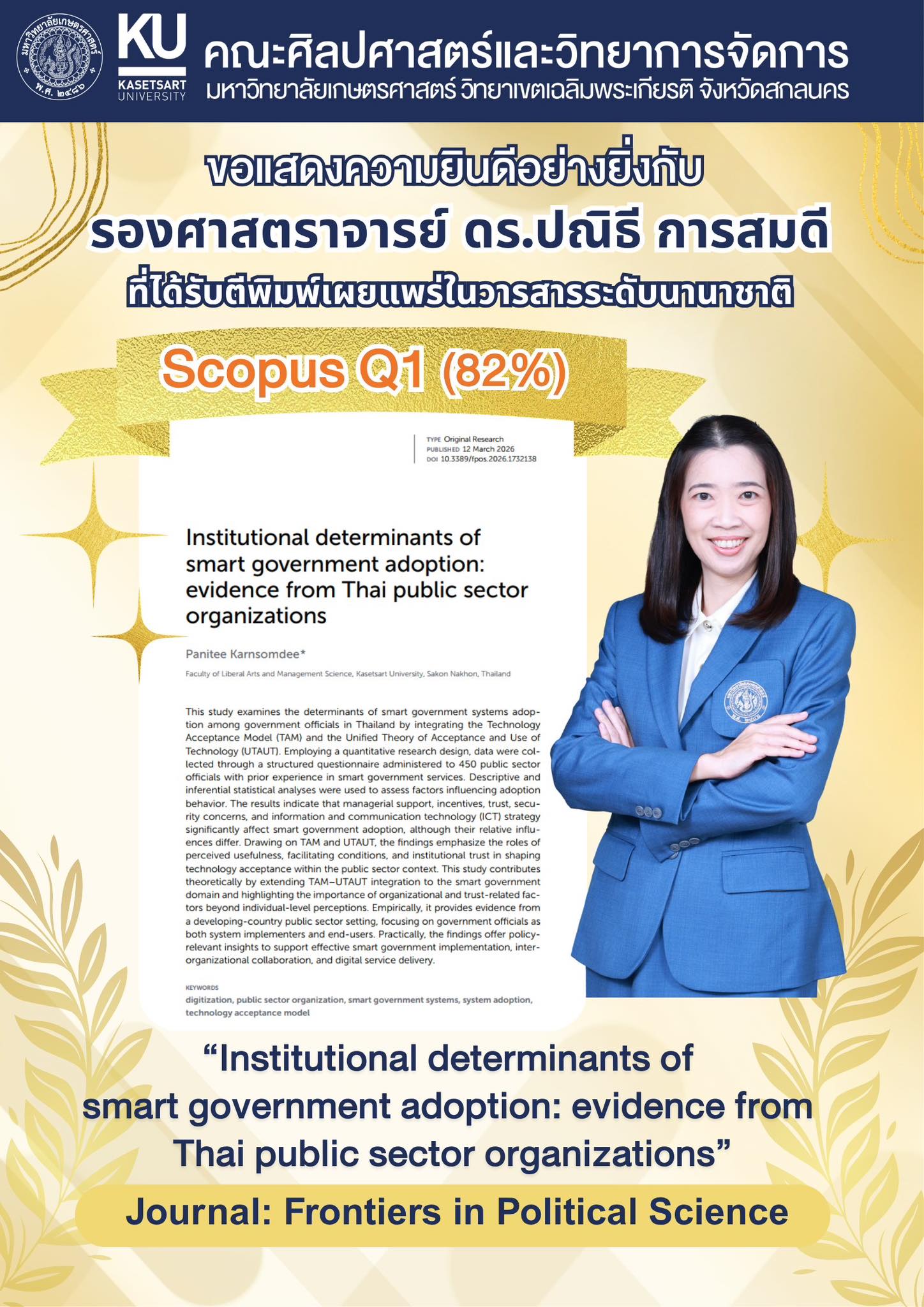คณะศิลปศาสตร์และวิทยาการจัดการ มหาวิทยาลัยเกษตรศาสตร์ ขอแสดงความยินดีอย่างยิ่งกับ ----