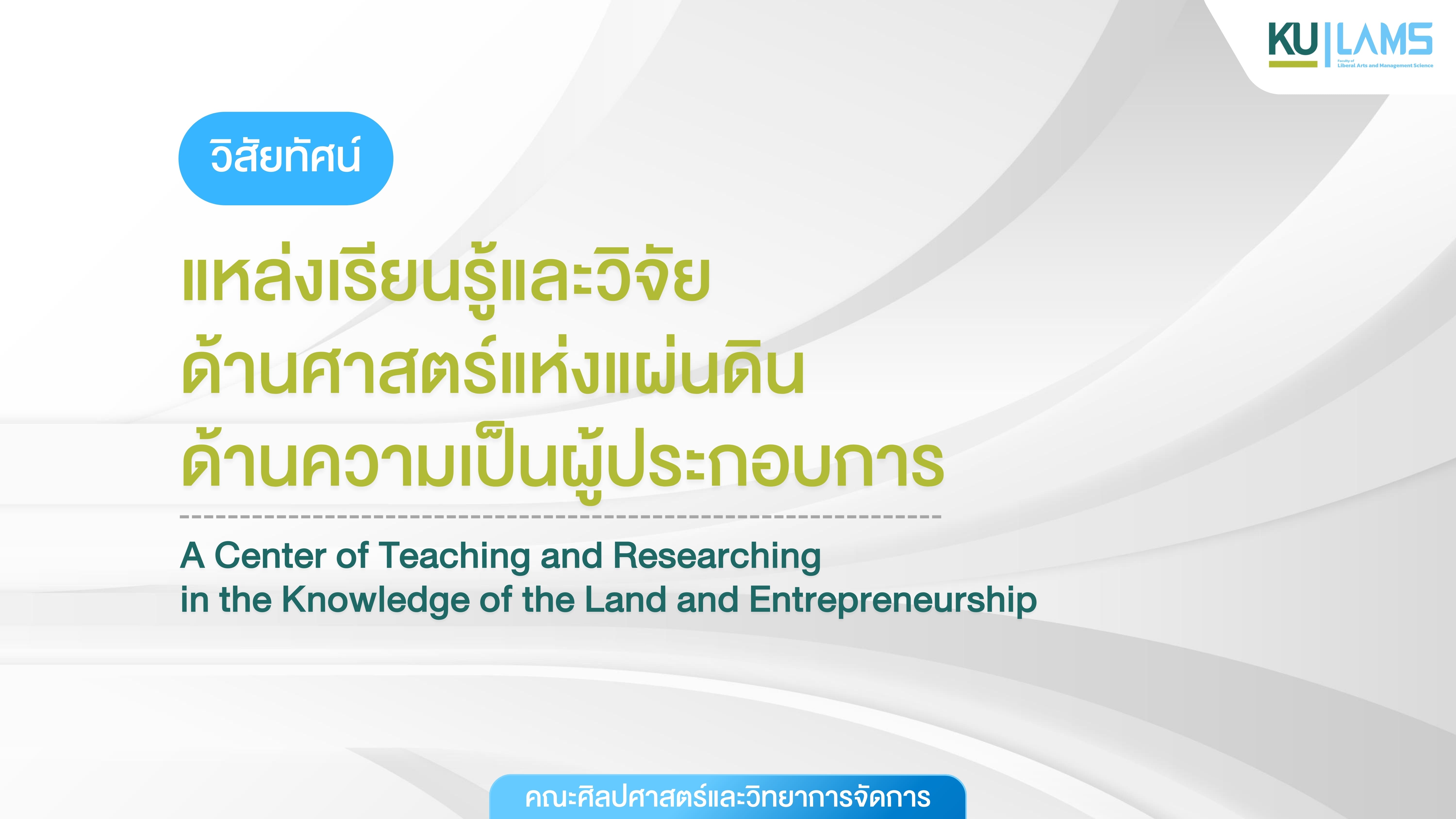แหล่งเรียนรู้และวิจัยด้านศาสตร์แห่งแผ่นดินด้านความเป็นผู้ประกอบการ